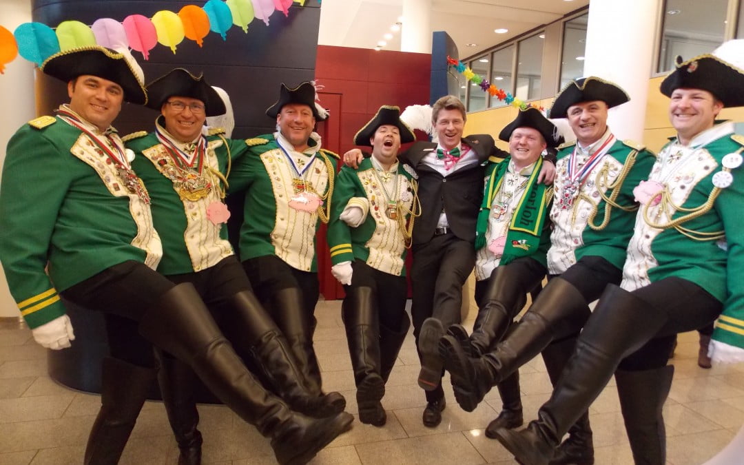 Beim Besuch der Ennigerloher Sparkassen-Filiale am Weiberfastnachtstag nutzte unsere Prinzengarde die Gelegenheit, sich bei Beratungscenter-Leiter Jürgen Wedig für eine kürzlich erfolgte Spende zu bedanken. Den großzügigen Betrag von 1.000 € hatte die Sparkasse Münsterland-Ost zur Anschaffung neuer Stiefel zur Verfügung gestellt.